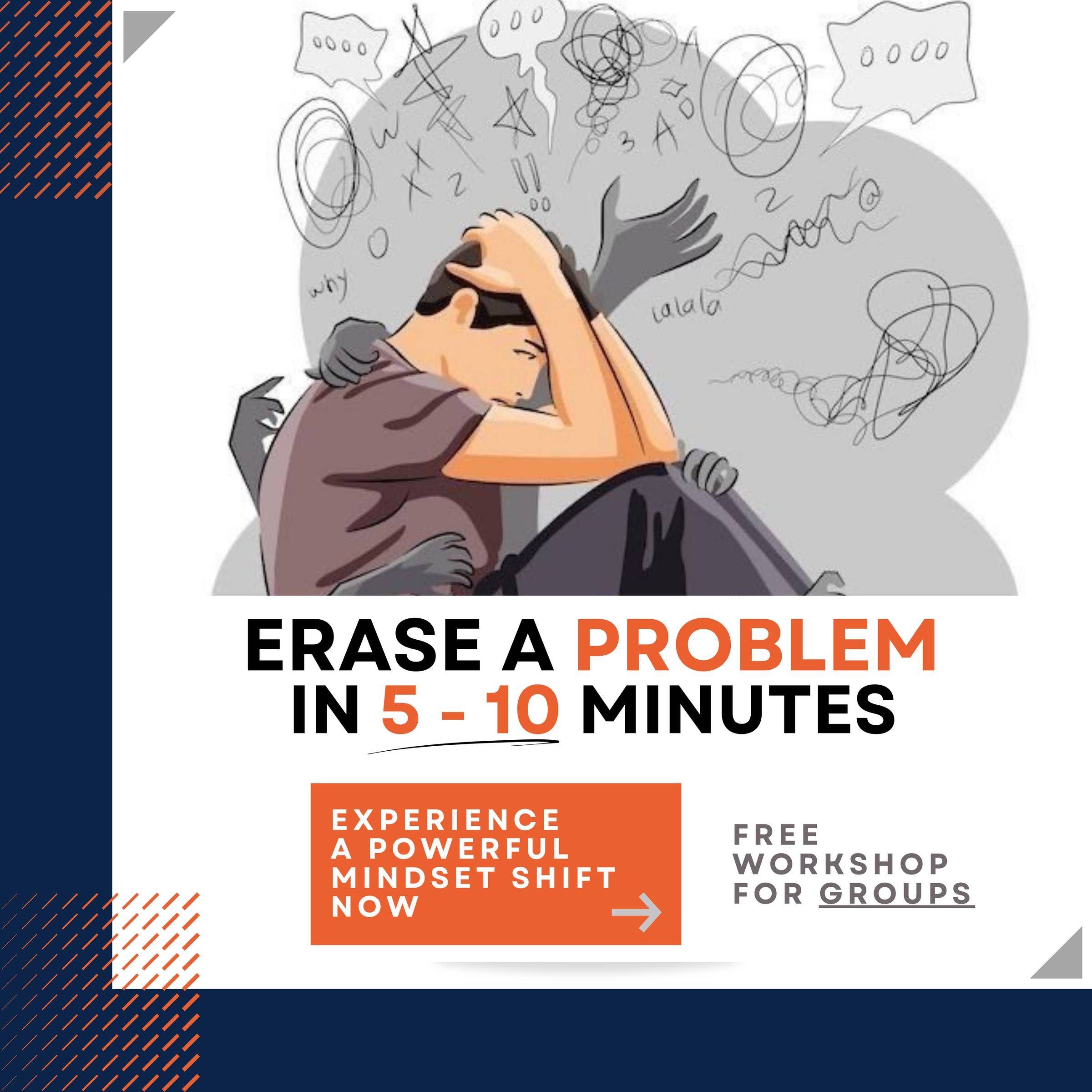 In the group Mindshift session, you’ll simply write down the problem you want to clear—either on paper or in your phone. No one has to know unless you want to share your problem. 4 Steps.